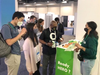 Many foreign visitors to the site were interested in the products, and inquired how the fermentation process worked. As those at the booth watched on intently to hear the story of "ARMORED FRESH Plant-based Cheese," they also gave favorable reviews of the taste and flavors. In addition, those who participated in the game to save the earth and environment through the QR code printed at the front of the booth also shows high engagement.